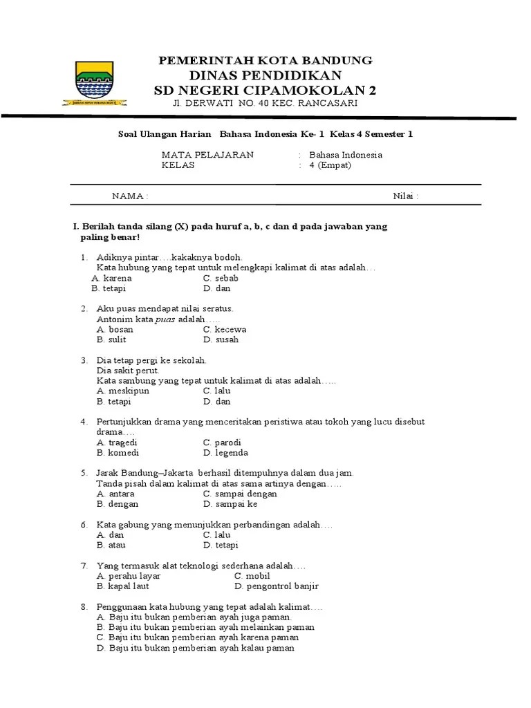 Alhamdulillah penulisan soal penilaian harian (ph) kelas 4 tema 1 ini sudah selesai. Hampir satu hari saya menyusun soal ini karena selama ini saya belum . Perangkat pembelajaran kelas 4 yaitu soal penilaian harian / ulangan harian . Buku pintar ulangan harian tematik sd/mi kelas 4 di tokopedia ∙ promo pengguna baru ∙ cicilan 0% ∙ kurir instan. Gambar disamping merupakan lambang dari pancasila, sila ke. 2) made dan dondo mempunyai perbedaan pendapat. Play this game to review other. Belanja online ulangan harian kelas 4 terbaik, terlengkap & harga termurah di lazada indonesia | bisa cod ✓ gratis ongkir ✓ voucher diskon. 1) perbuatan yang membutuhkan kerja sama dengan teman adalah. Download soal ulangan harian kelas 4 semester 1 pdf lengkap sesuai dengan kurikulum 2013 revisi terbaru, untuk tema 1, 2, 3, 4 dan 5 lengkap beserta . Soal & jawaban ph kelas 4 k13 2021/2022 lengkap semua tema,. + kunci jawaban * ringkasan materi lengkap * latihan soal ujian sekolah + kunci jawaban jual buku superbook ulangan harian kelas 4 sd/mi original Ulangan harian kelas 4 tema 1 subtema 1, add to my workbooks (0) download file pdf